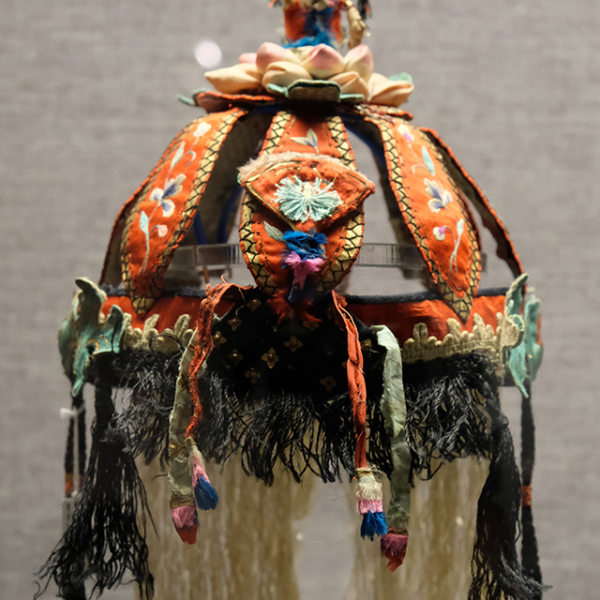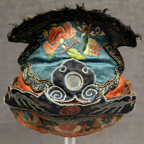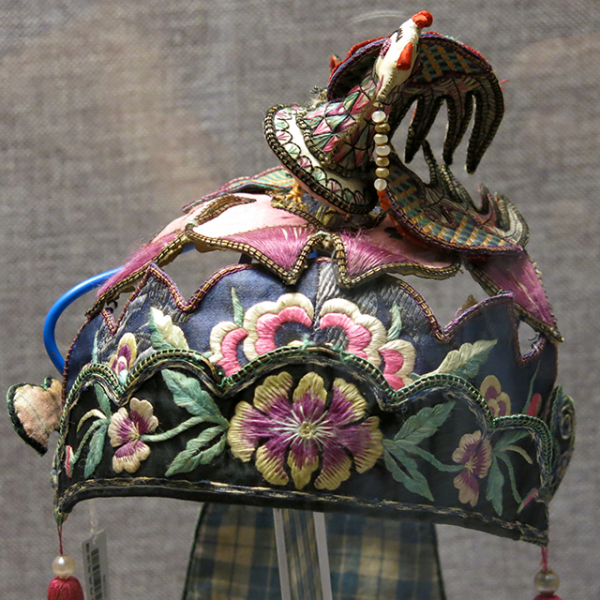 妇女儿童博物馆:堆锦绣花卉纹孔雀莲花凉帽