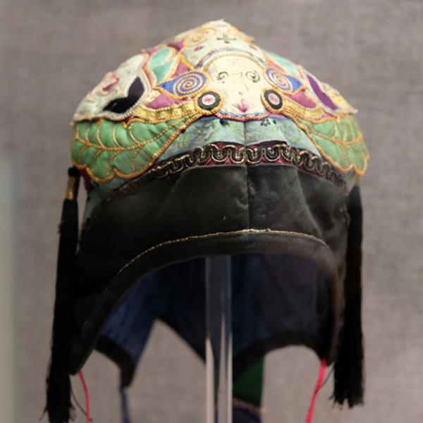 妇女儿童博物馆:紫缎布贴绣蝠顶棉风帽