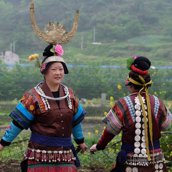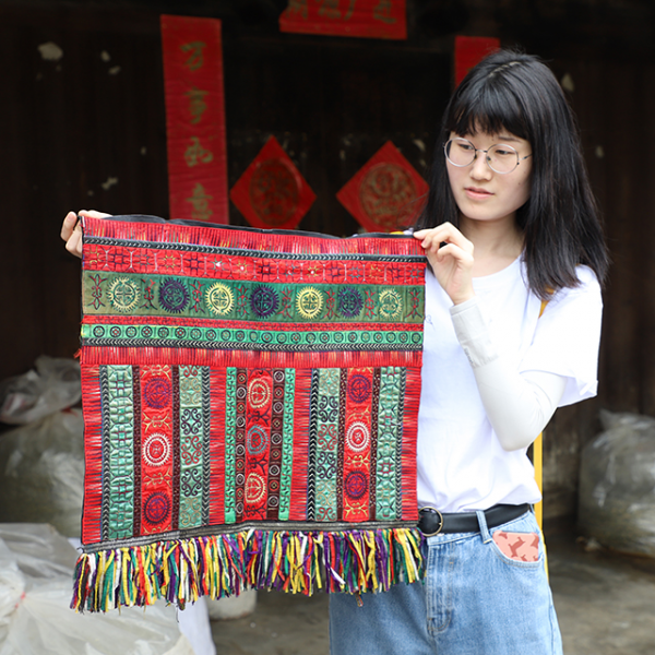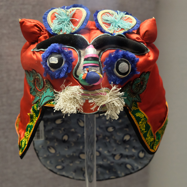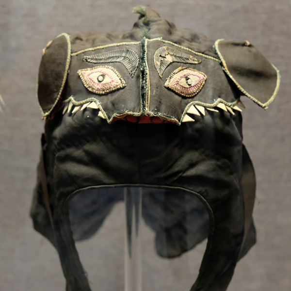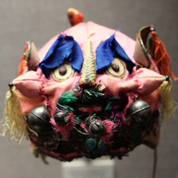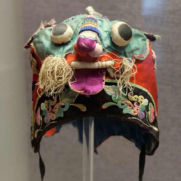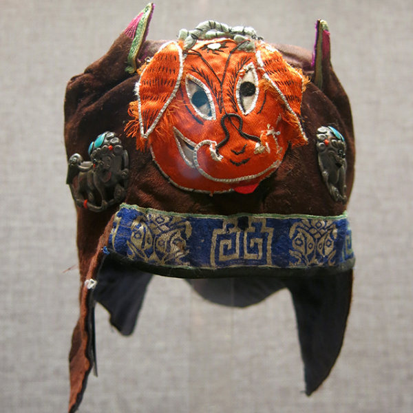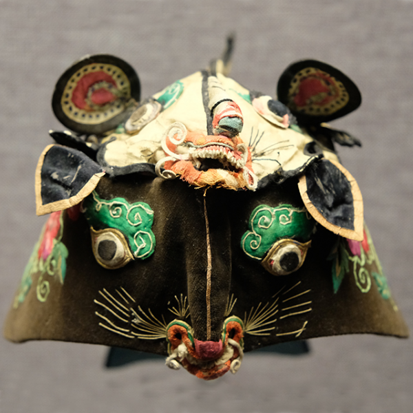 妇女儿童博物馆:黑布地布贴绣猪头风帽