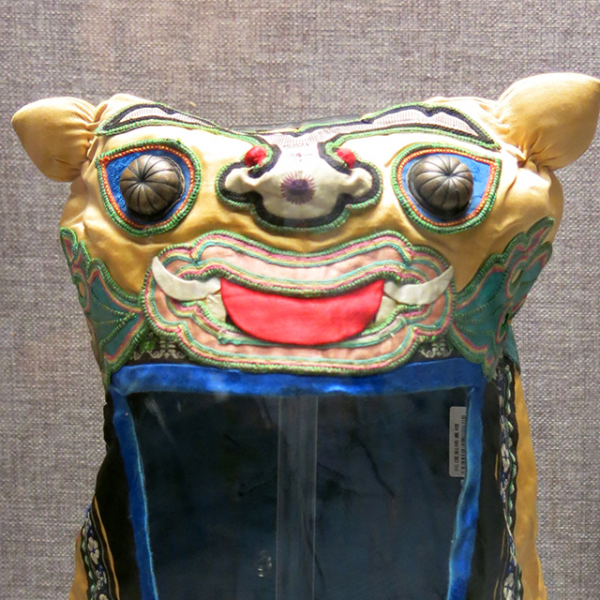 妇女儿童博物馆:黄缎地贴补绣虎头风帽