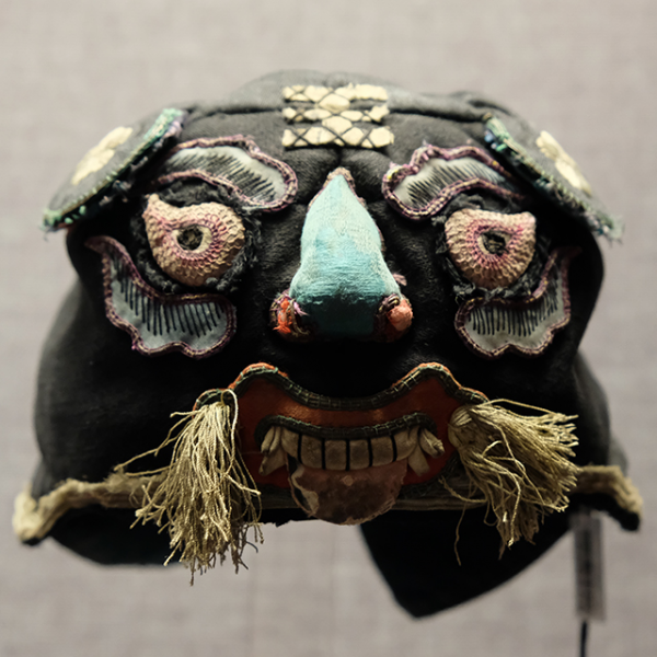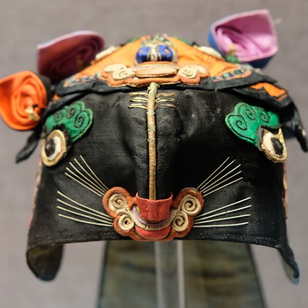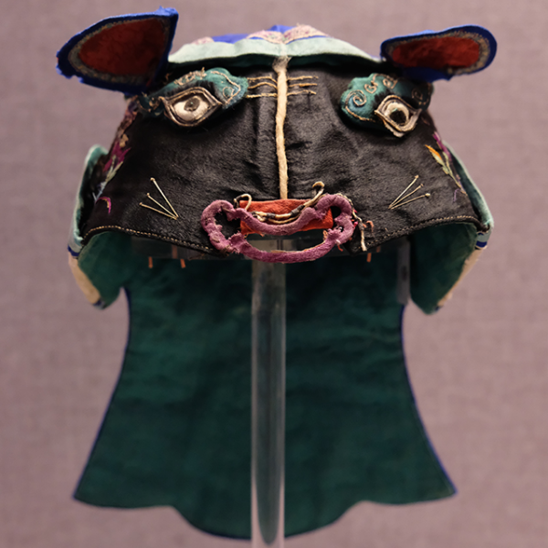 妇女儿童博物馆:黑镶彩缎地剪纸绣虎头风帽
