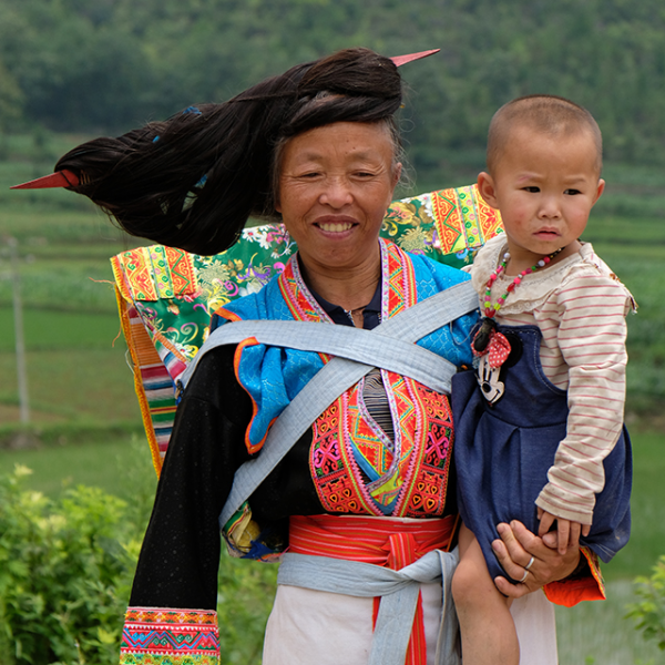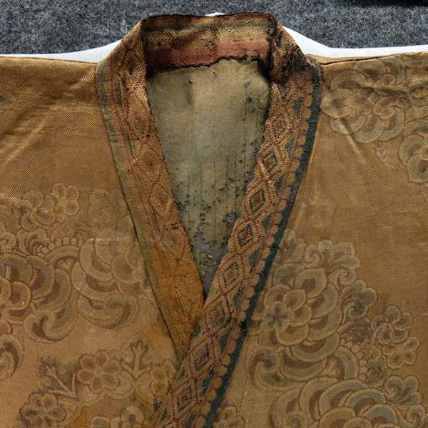 黑缎地布贴蝶翅顶打籽锁绣花卉纹攒花兔首风帽
