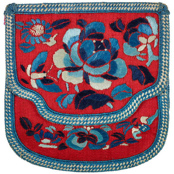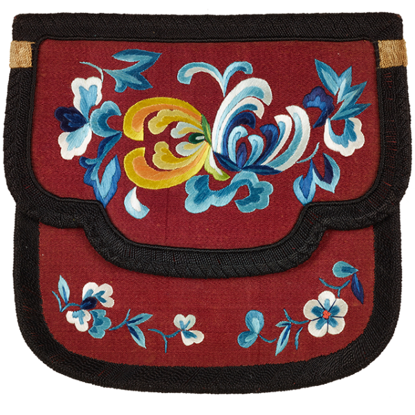 黑缎地平绣花卉纹带护脖鹰首棉帽