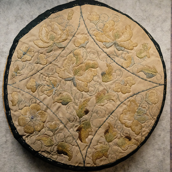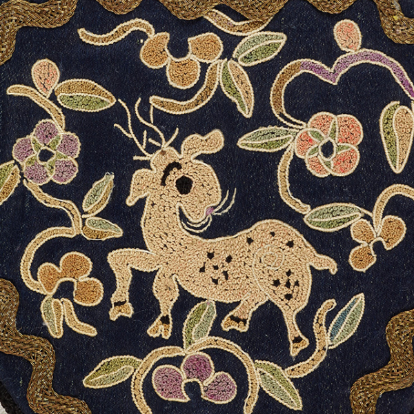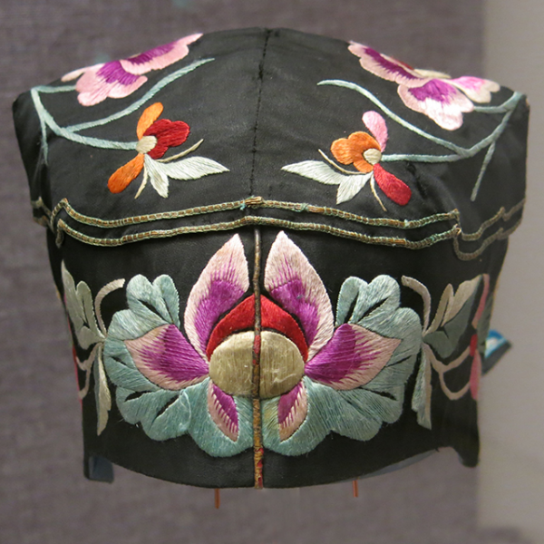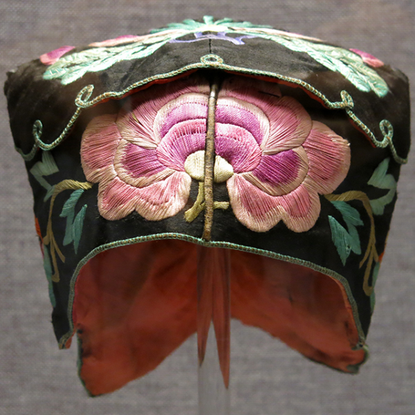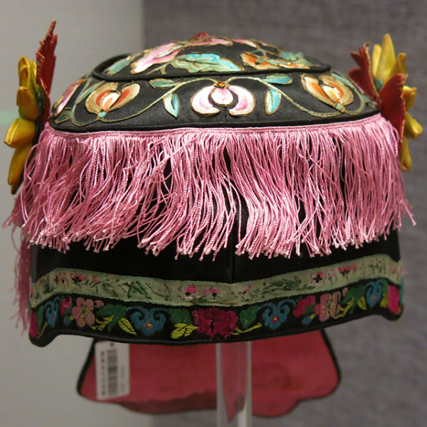 妇女儿童博物馆:黑缎地平绣莲花牡丹纹棉帽