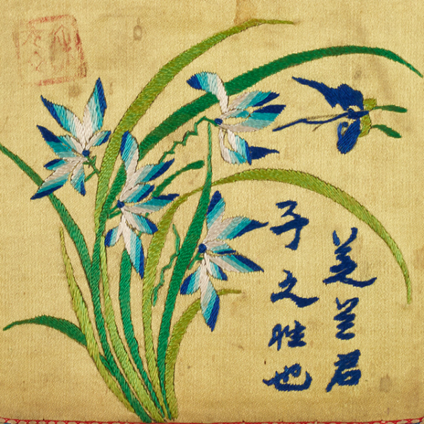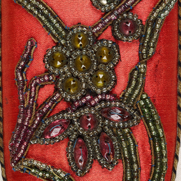 朱红色缎地珠绣眼镜盒