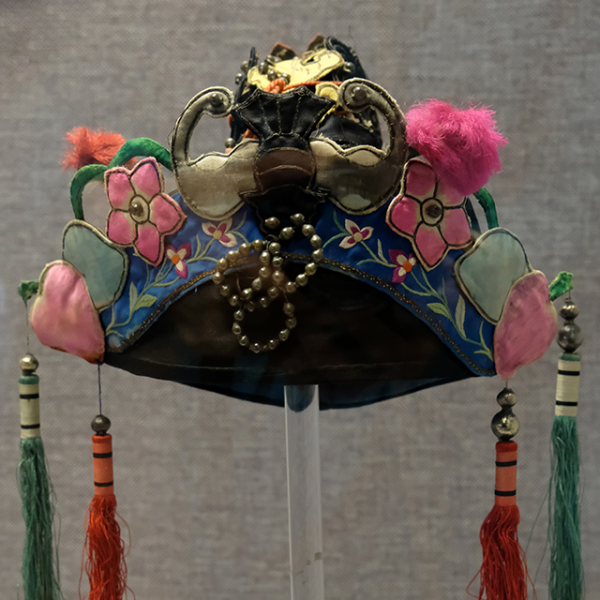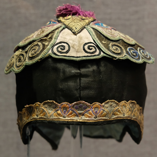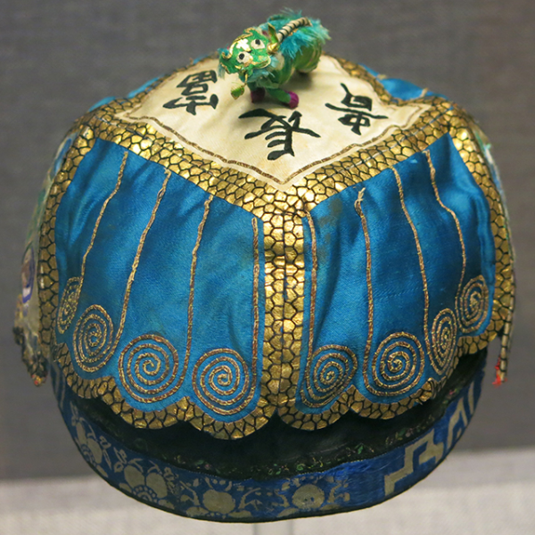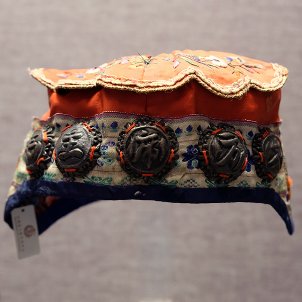 妇女儿童博物馆:黑缎地堆锦福寿纹冠上冠童帽