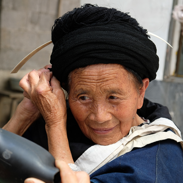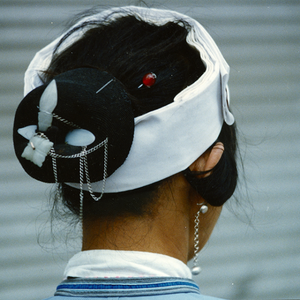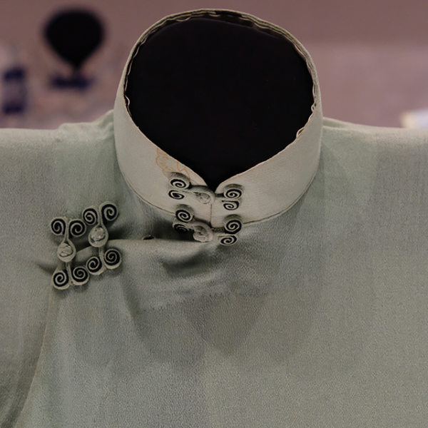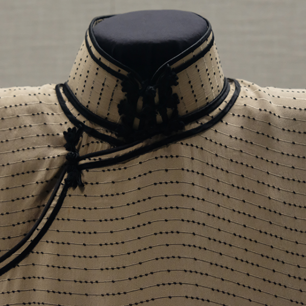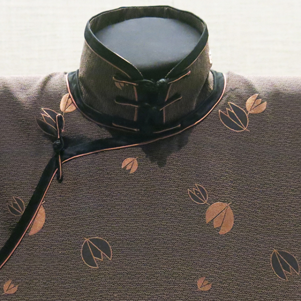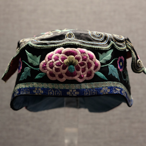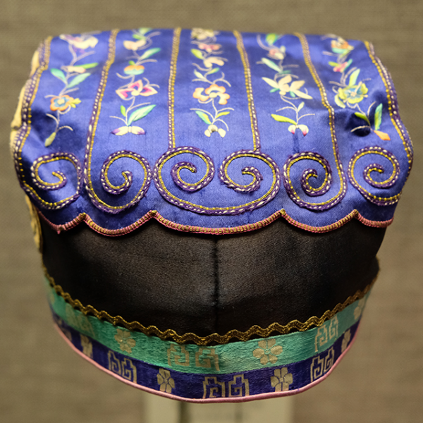 妇女儿童博物馆:黑缎地平绣花卉金鱼纹夹帽