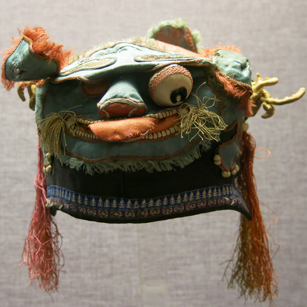 妇女儿童博物馆:黑缎地贴补绣狮子帽