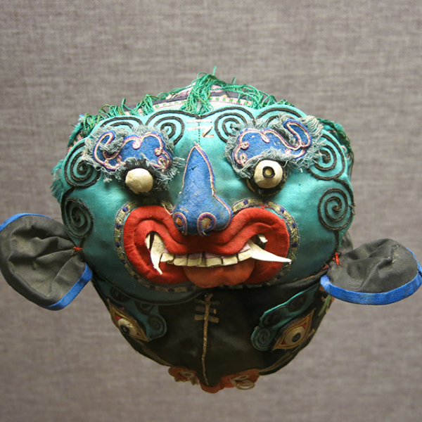 妇女儿童博物馆:彩缎拼接平绣花卉文物虎上虎夹帽